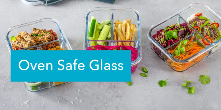3-Fach-Glas-Behälter für Mahlzeiten mit verschließbaren Deckeln - 3er-Pack